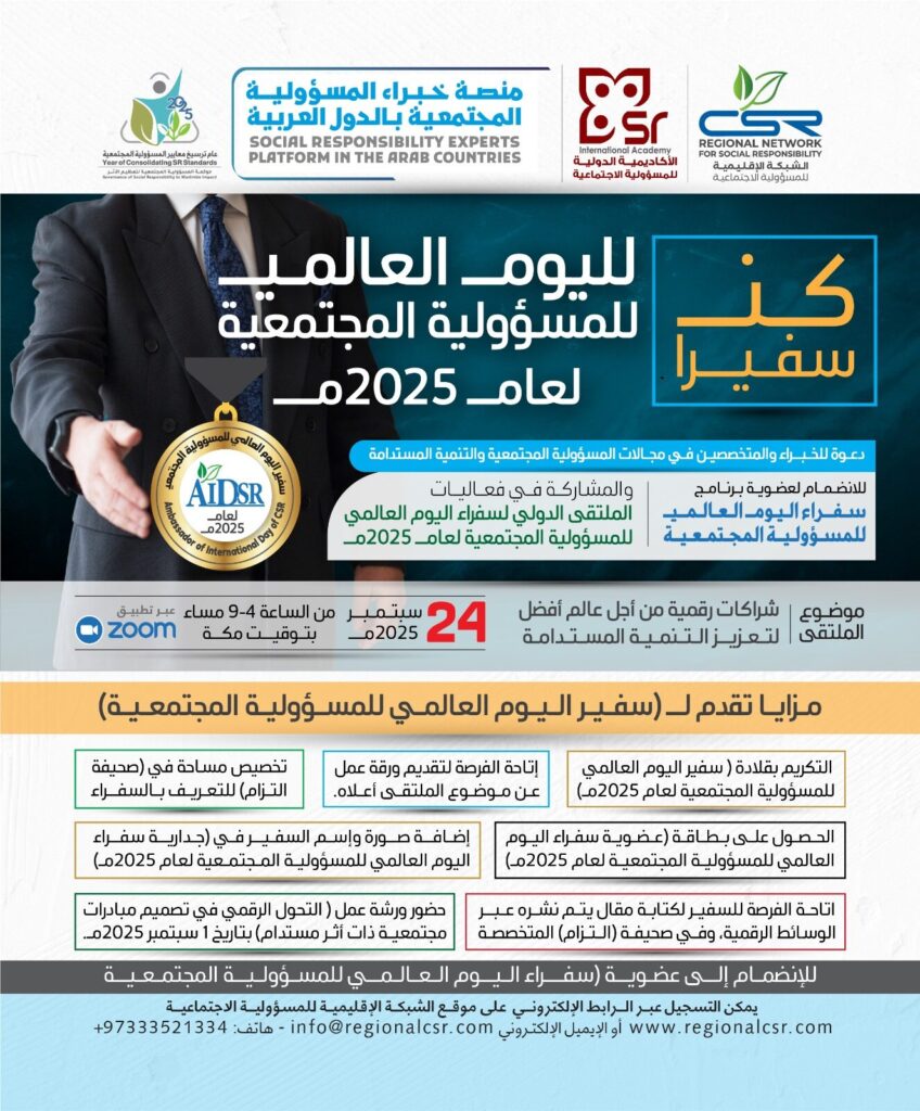 مزايا تقدم ل” سفير اليوم العالمي للمسؤولية المجتمعية”:-