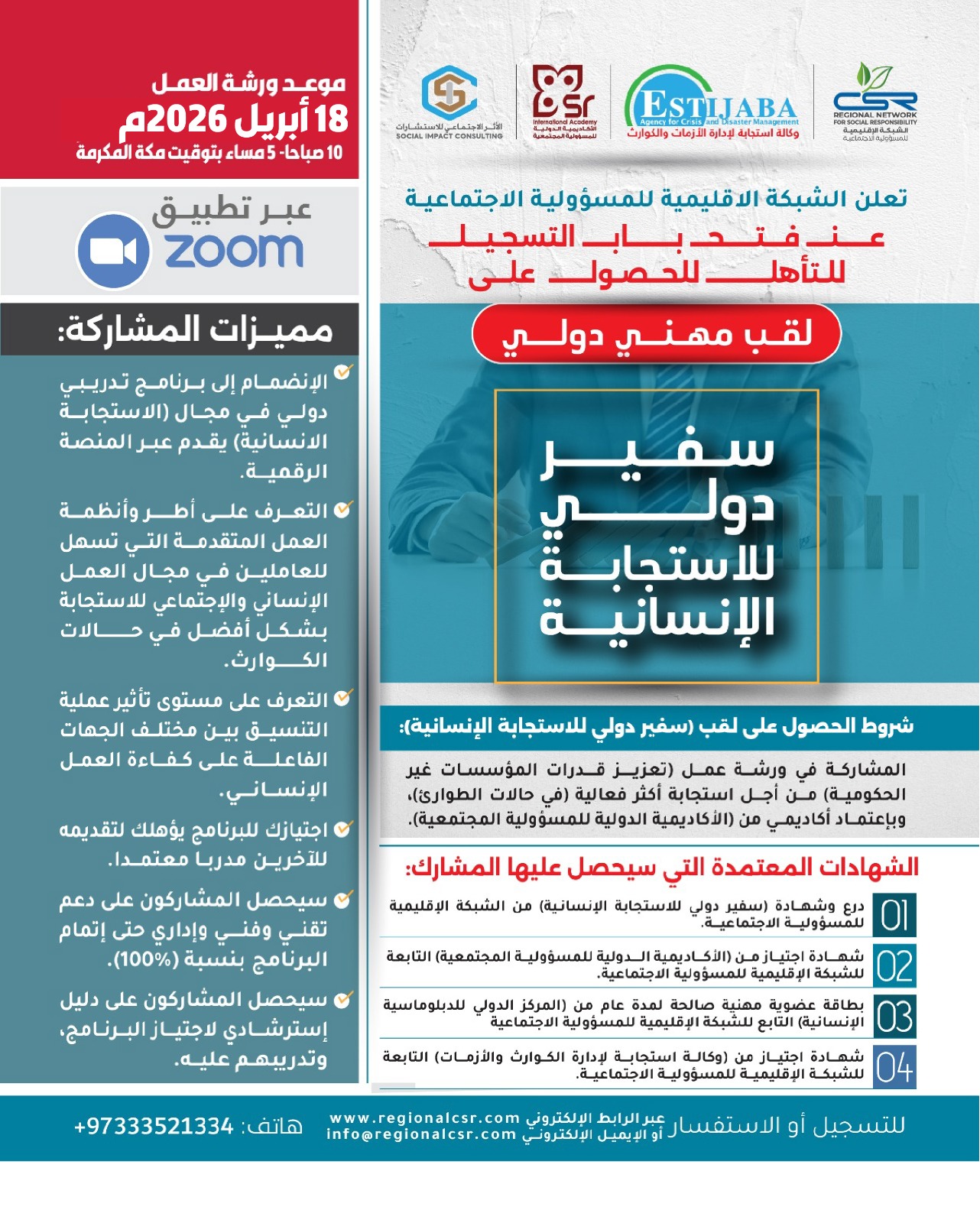 - لقب سفير دولي للاستجابة الإنسانية
